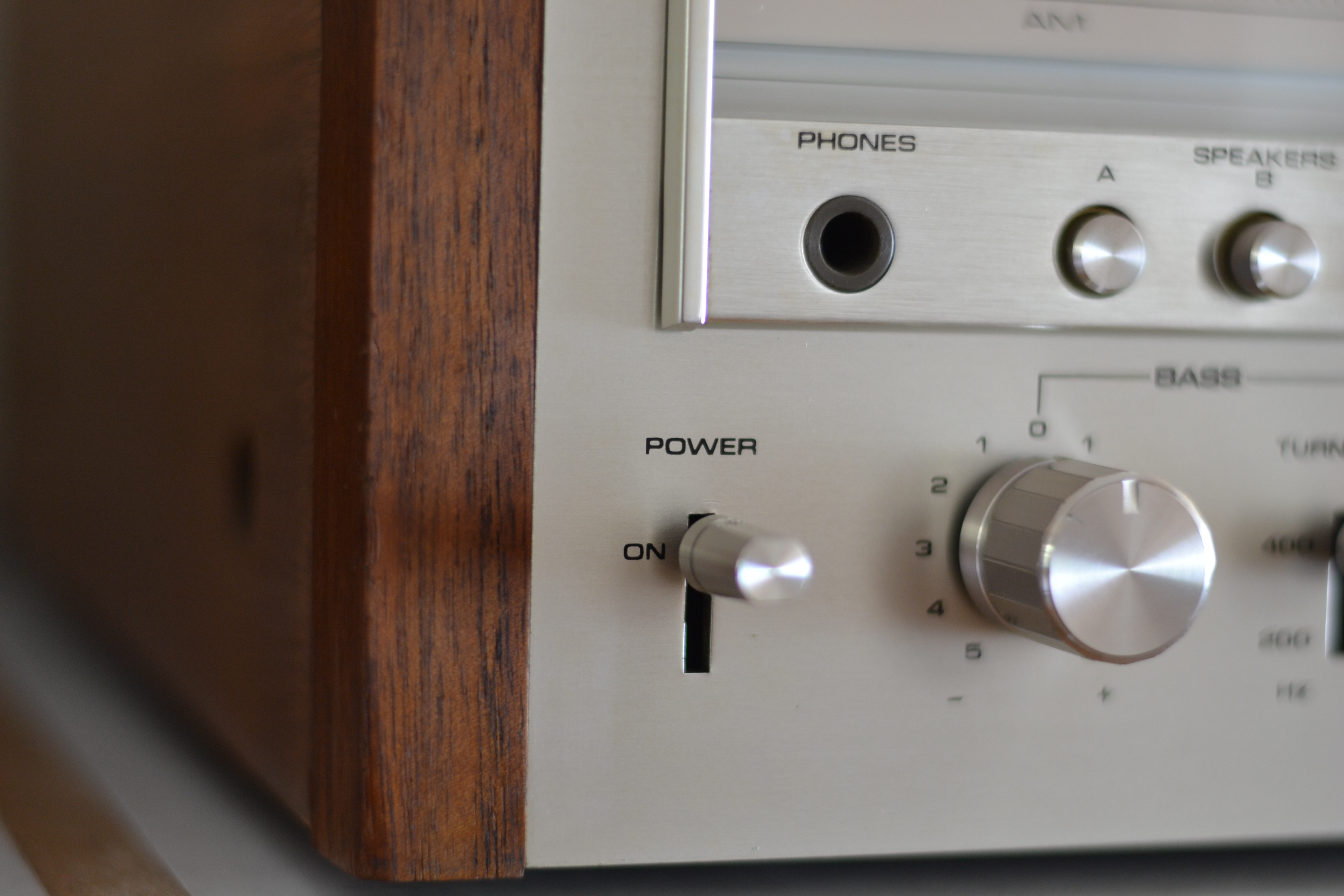 So oder so: der Pioneer SX-950 ist eine elegante Maschine. Holzgehäuse, dicke Alu-Front, sehr gutes Anfassgefühl. Die Knöpfe sind aus vollem Aluminium. Und das ganze Design ist sehr hell, viel Licht. Die Receiver-Baureihen davor, also die Nummern X2X und X3X, hatten eine Frontplatte, die stärker mit einem hell-dunkel-Kontrast arbeitet: vor allem eine dunkel hinterlegte Radiofrequenz-Anzeige. Mir gefällt diese Serie besser.