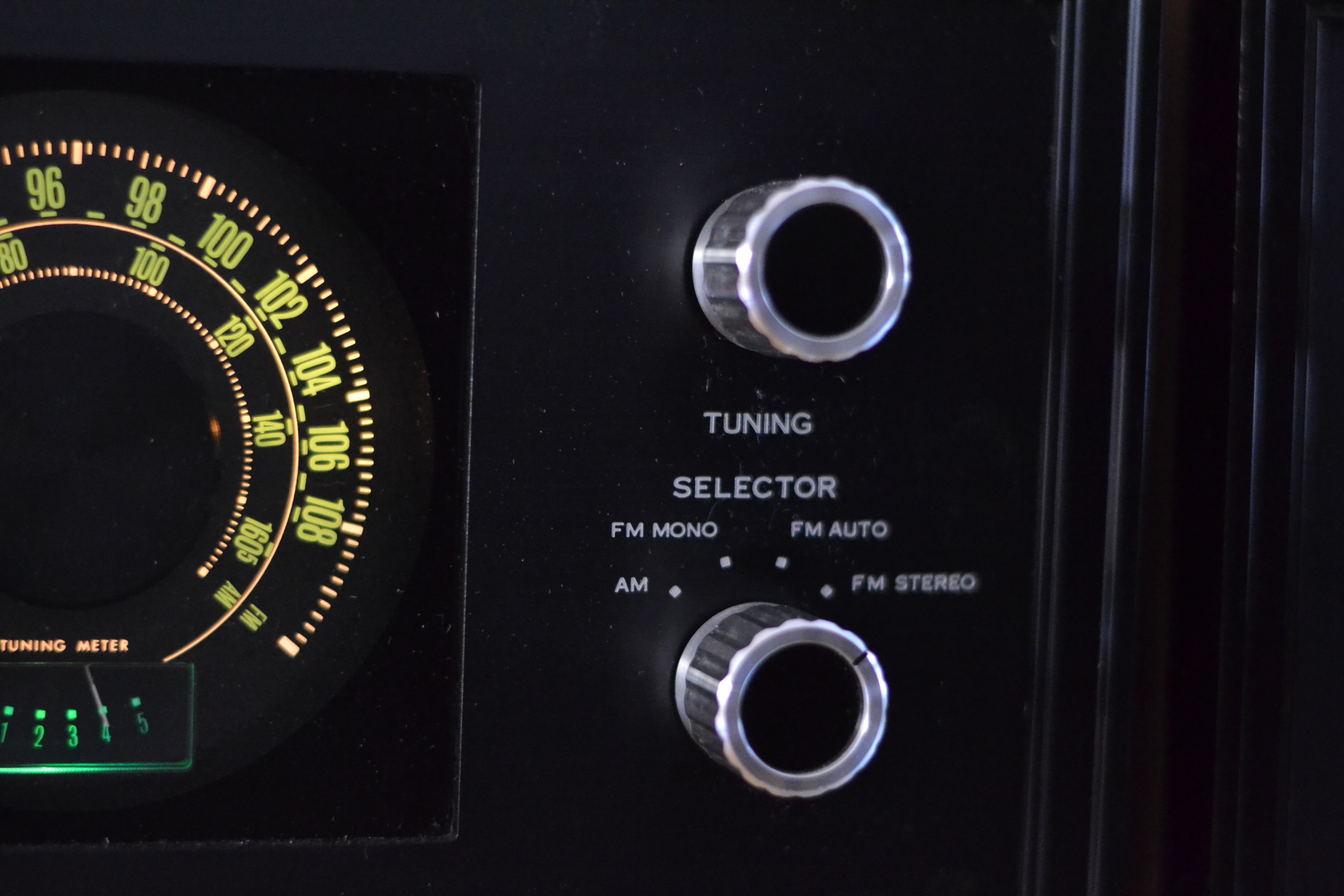 Ich könnte ja eine ganze Sammlung von Tunern zusammenstellen, die alle Möglichkeiten abdeckt, die Skala zu präsentieren – da könnte was zusammenkommen. Es gibt die normale Skala, wo man den Zeiger mit einem Drehknopf horizontal bewegt. Es gibt diese hier, wo man sie kreisförmig bewegt. Es gibt aber auch den tollen Denon TU-500, bei dem man die Skala dreht, die als Kreis im Tuner steckt.