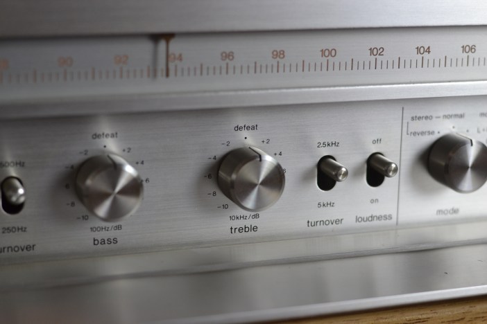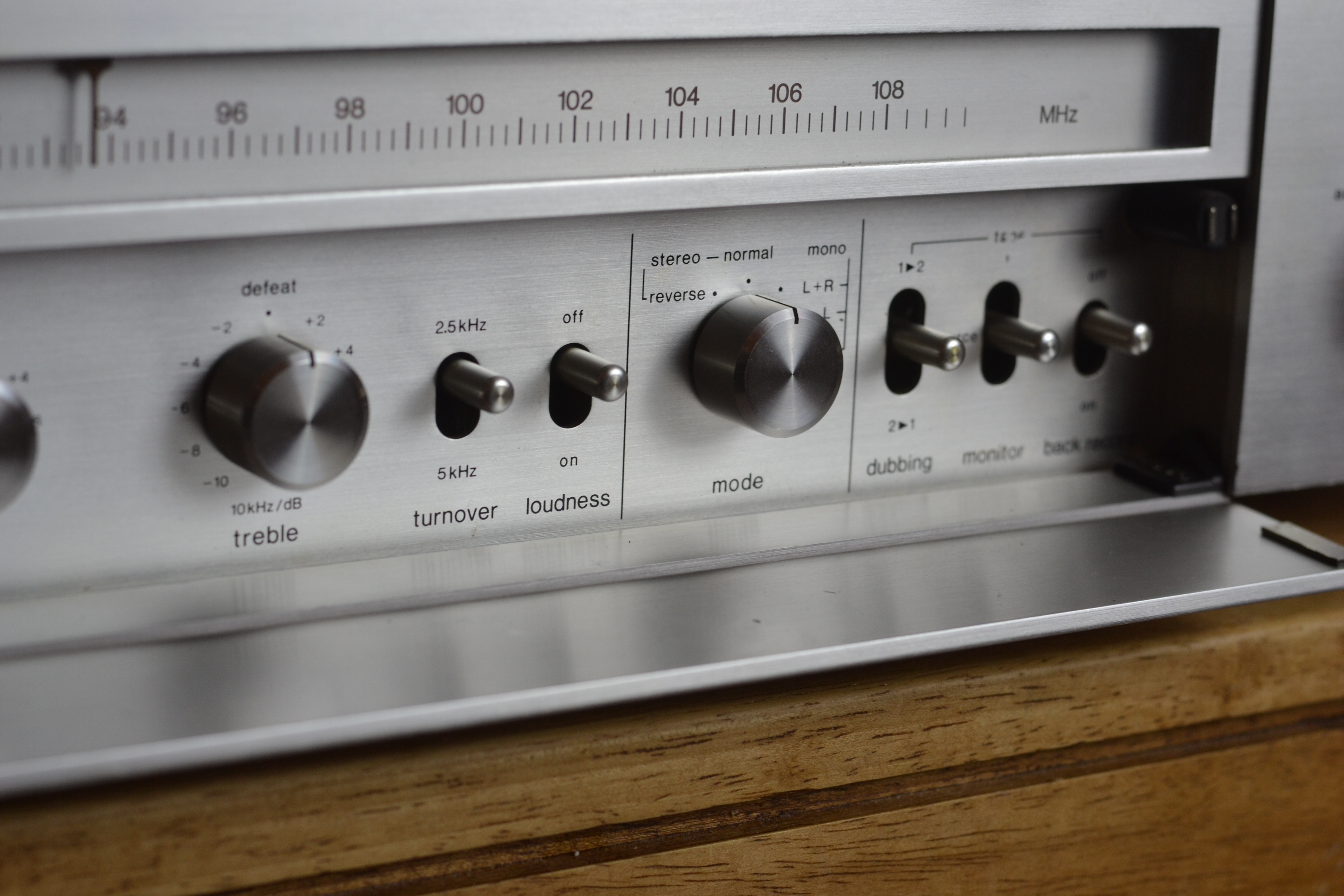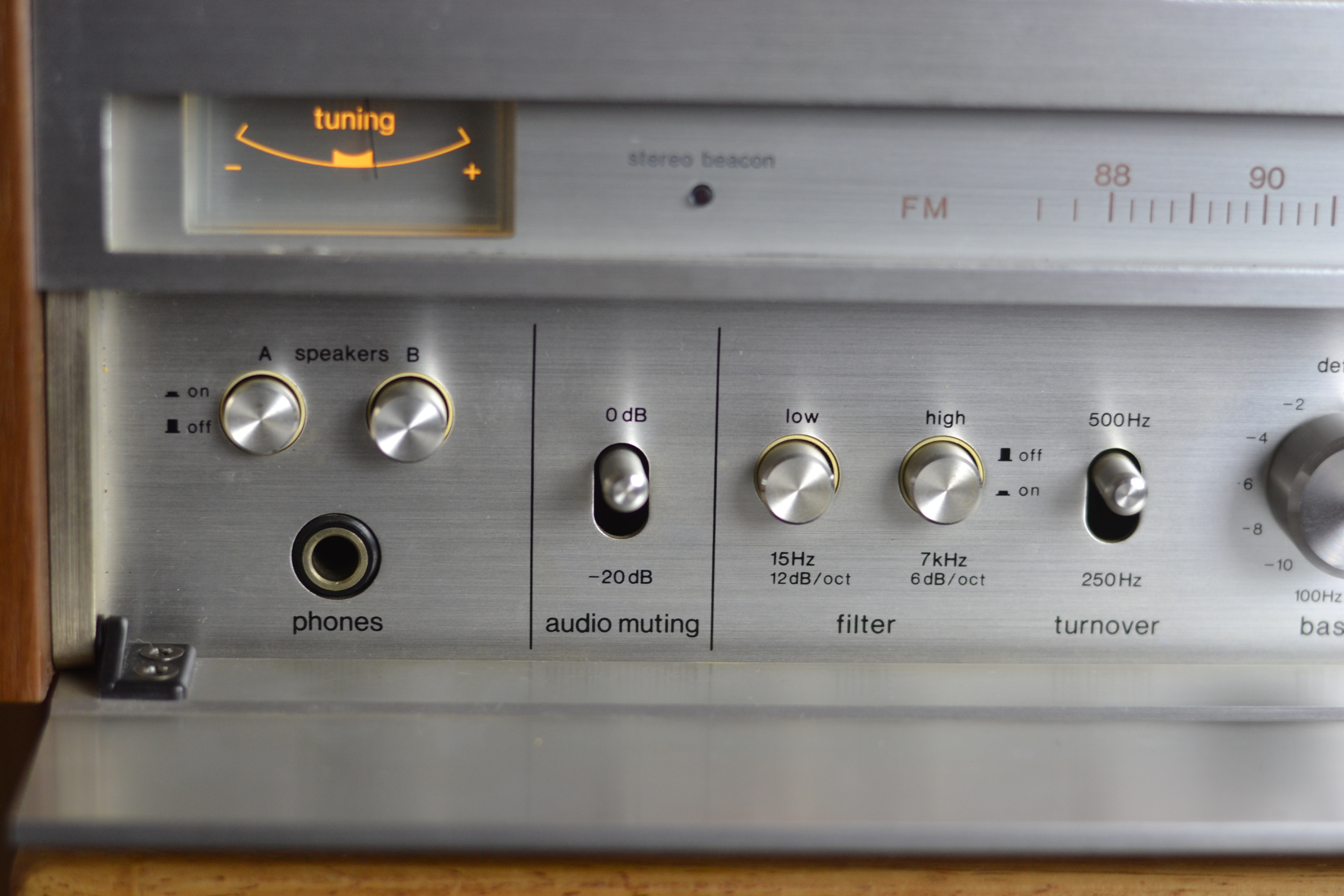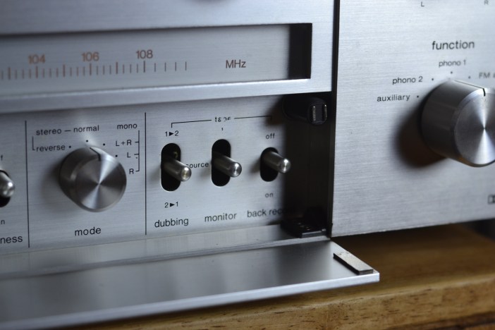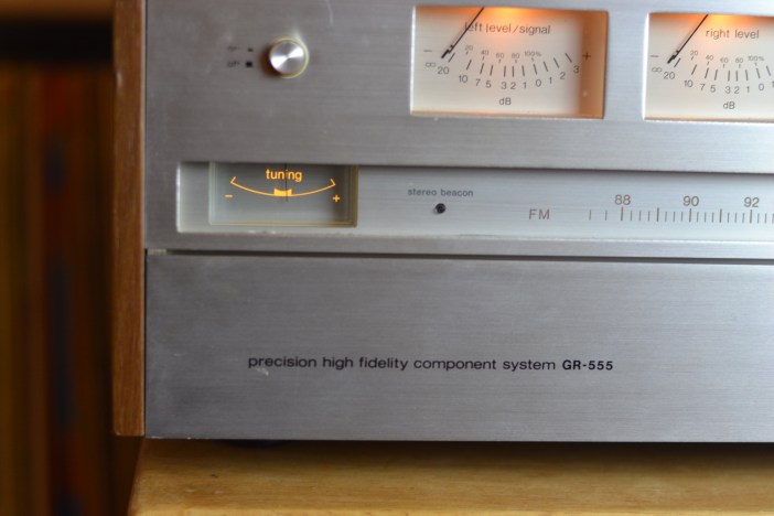 Das tat der GR-555 tatsächlich nicht. Auch andere Firmen verbargen die unwichtigen Regler hinter einer kleinen Klappe. Aber niemand wagte es, seinen Receiver so sachlich und minimalistisch aussehen zu lassen (außer Braun in Deutschland). Neben all den anderen japanischen Geräten, die ihre Kraft auch in ihrem Äußeren zeigten, gerade während des Receiver Wars, als Kraft ein Verkaufsargument war, muss der GR-555 damals ziemlich eigenartig ausgesehen haben. Wahrscheinlich ist er deshalb auch ziemlich selten.
